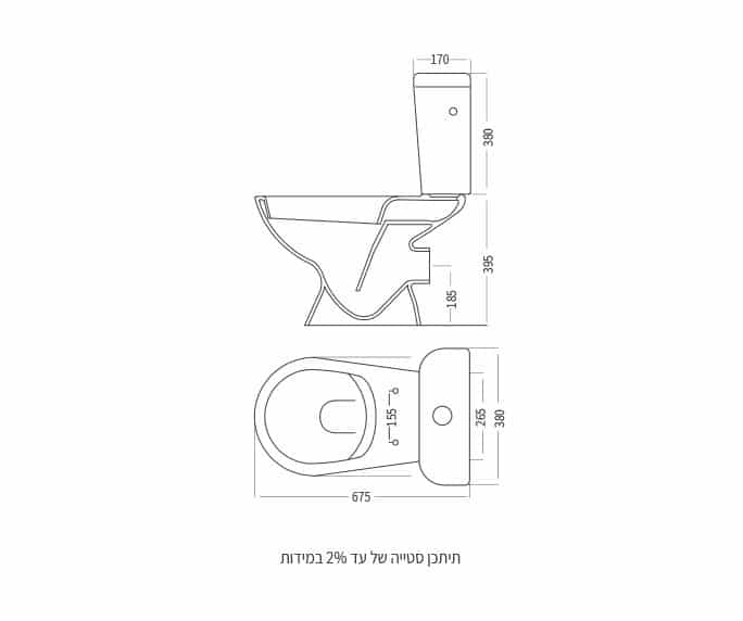 האסלה מתאימה להתקנה רצפתית סטנדרטית, עם שטיפה יעילה ונוחות שימוש לכל בני הבית.