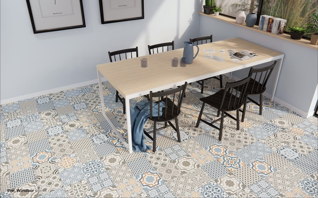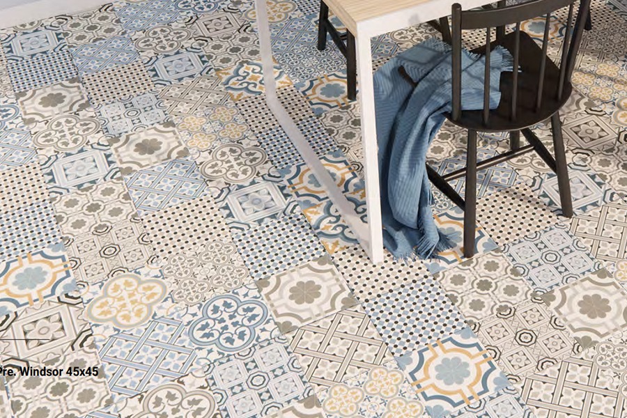 סדרת Pre. Windsor 45×45 מציגה פרשנות עכשווית לאריחים אירופאים קלאסיים, עם שילוב מדויק של דוגמאות שונות על גבי אריחים בגימור מט טבעי.