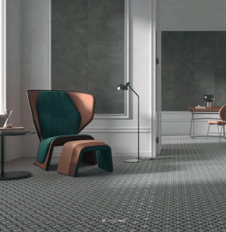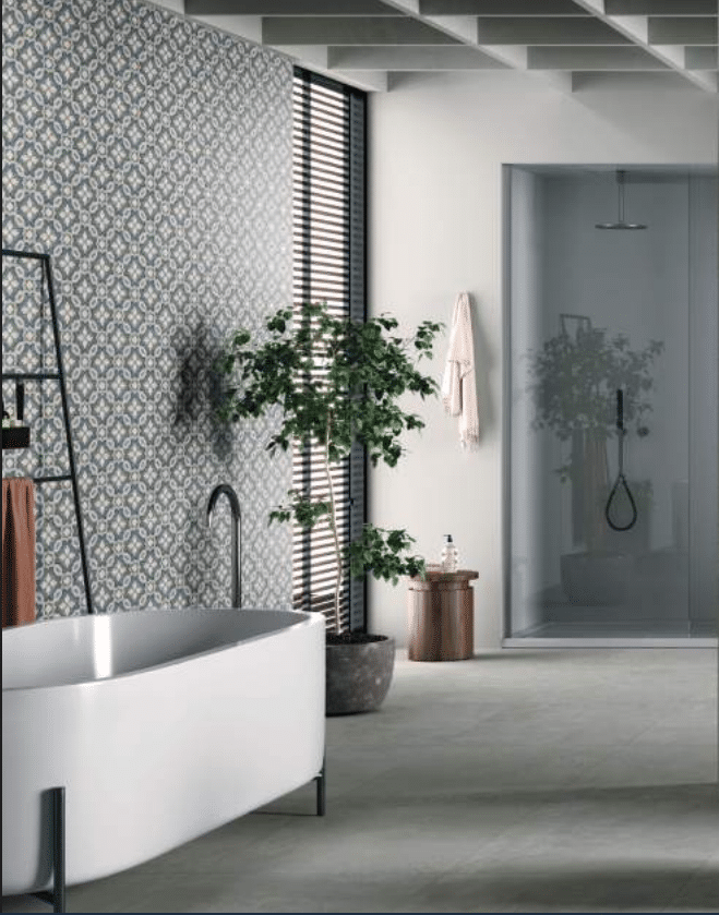 דגם Victorian Blue מסדרת SPATULA של Ceramica Euro מביא פרשנות מודרנית לאריחי וינטג' אירופאיים קלאסיים.
