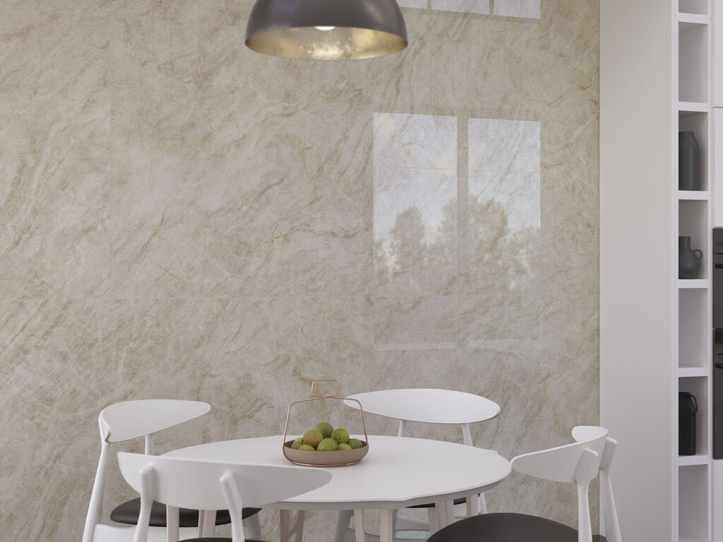 הגימור Pulido (מבריק) מדגיש את תנועת הוורידים ומעצים את החזר האור, מה שמעניק לחלל תחושת מרחב, ניקיון ויוקרה.